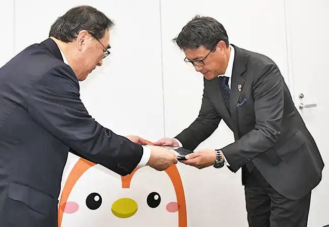 49回目となる2025年度「ニッキン賞」の表彰式が1月13日、東京ダイヤビルディングで開かれた。日本金融通信社の宮岸順一社長が、全国地方銀行協会の片岡達也会長に賞牌(しょうはい)と副賞(50万円)の目録を贈呈した。地銀協は25年11月、引っ越しに伴う住所変更手続きなどをワンストップで受け付けるサービス「ペンリィ」を開始。同サービスは地銀業界で23年度から検討してきたもので、第二地方銀行業界も参画している。宮岸社長は、「地域住民の利便性向上や金融機関の業務効率化に寄与する」と称賛した。副賞は、同サービスの周知活動などに役立てられる。